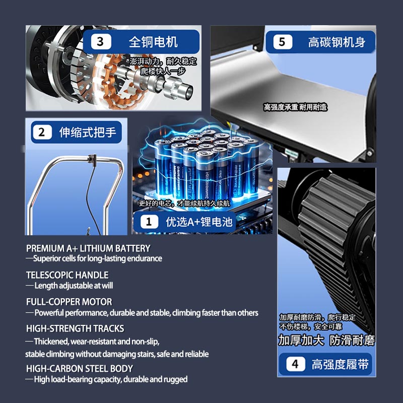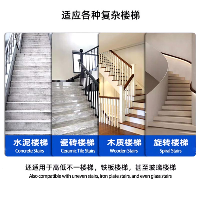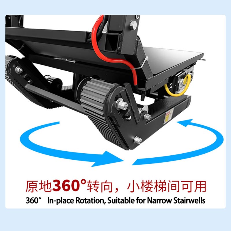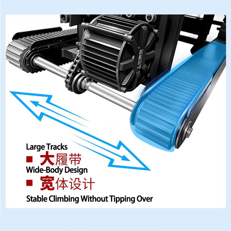 The special rubber tank track provides outstanding grip, shock absorption, and durability on various stair surfaces such as tile, concrete, and marble.