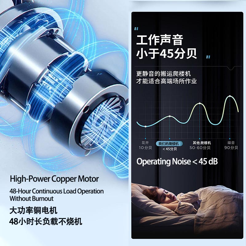 Its compact 105 × 58 × 70 cm body and easy-turning platform design make it ideal for narrow staircases and tight indoor spaces.